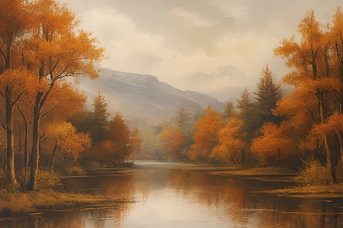 Framed Autumn est Landscape Rustic Nature Fine Decorative FarmhouseCountry RelaxCalmCozy Multicolor Zen Bedroom Natural
