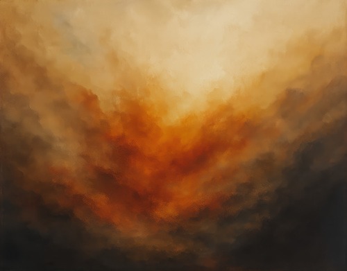 Extra Large Framed Fiery Sunset Abstract Dramatic Warm Tones Illustration Home Living Room Bedroom Decor (Frame Assembly Required)