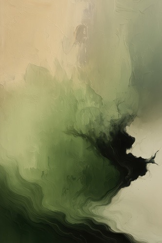 Extra Large Framed Abstract Green Swirl Soft Fluid Illustration Home Living Room Bedroom Decor (Frame Assembly Required)