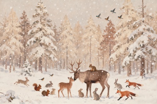 MUDECOR Framed Woodland Animals in Snow Painting Deer Fox Rabbit and Squirrel Winter est Illustrations Decorative Earth Living Room Bedroom Office Natural