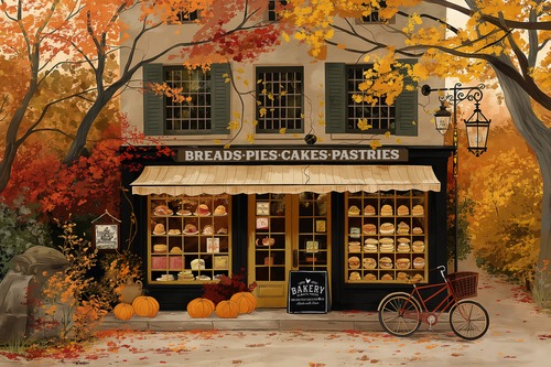 Framed Autumn Bakery Storefront with Pumpkins Fall Photography Decorative Living Room Bedroom Office NATURAL