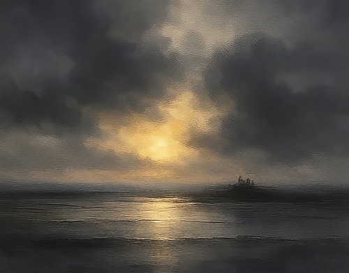 SIGNLEADER XL Framed Dark Ocean Sunset Dramatic Seascape with Golden Sunlight (Frame Assembly Required)