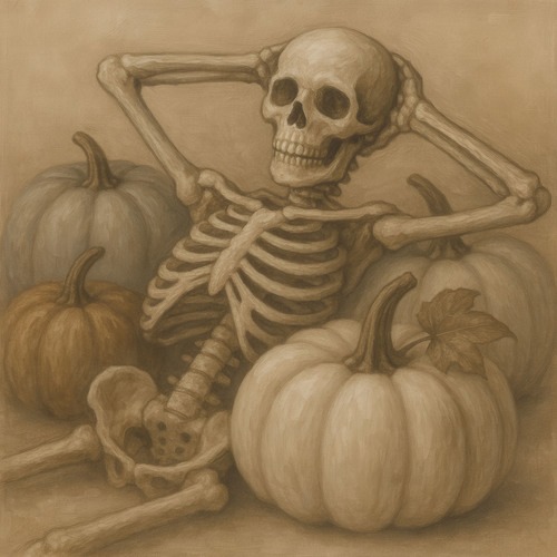 Large Framed Relaxing Skeleton with Pumpkins Vintage Halloween Home Living Room Bedroom Decor (Frame Assembly Required)