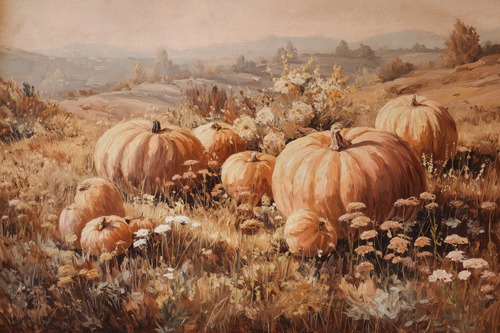Harvest Season Pastoral Farmland Nature Wilderness Illustrations Rustic Zen Colorful Living Room Bedroom Office