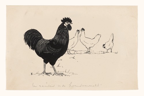 MUDECOR Framed Black Rooster with White Hens Vintage Poultry Illustrations Bohemian RelaxCalm Cool Living Room Bedroom Office Natural