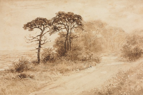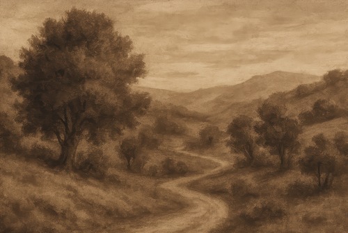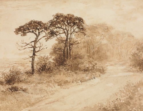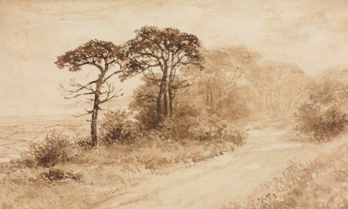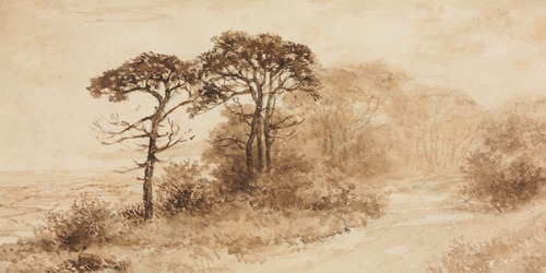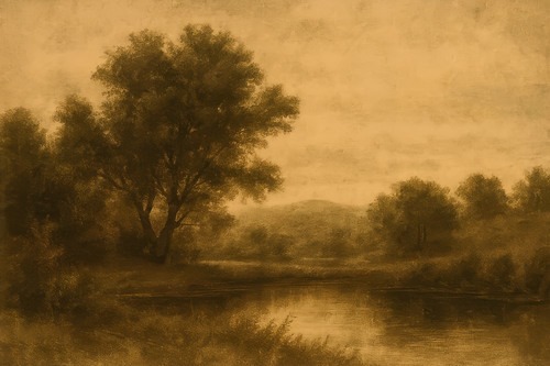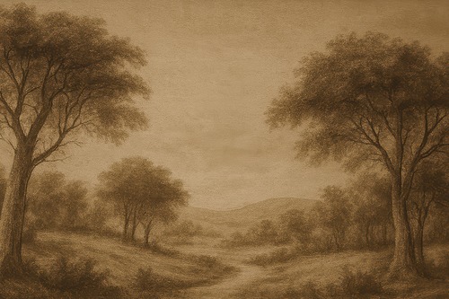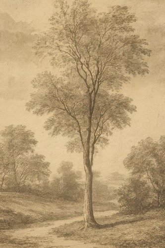 Premium Frame Rustic Countryside Trees Sepia Landscape Vintage Nature Illustrations Fine Traditional Iconic Living Room Bedroom Office Natural