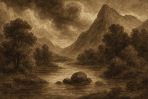 Premium Frame Sepia Mountain River Landscape Vintage Illustrations Fine Traditional Iconic Living Room Bedroom Office Natural