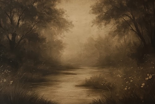 MUDECOR Premium Framed Misty est River Sepia Landscape Illustrations Impressionism Scenic Colorful Living Room Bedroom Office