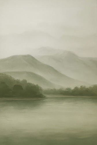 Morning Mist est Landscape Tranquil Neutral Illustrations Impressionism Scenic Colorful Multicolor Living Room Bedroom Office