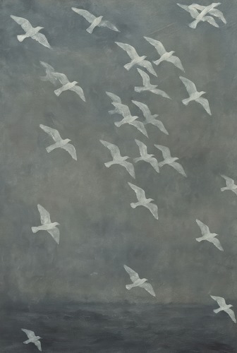MUDECOR Premium Framed Flying Birds Over Misty Ocean Illustrations Impressionism Scenic Colorful Living Room Bedroom Office Black