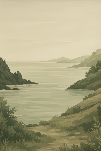 Green Coastal Landscape Minimalist Nature Illustrations Impressionism Scenic Colorful Multicolor Living Room Bedroom Office