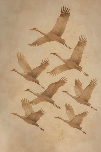 MUDECOR Premium Framed Flying Cranes Vintage Minimalist Beige Bird Illustrations Impressionism Scenic Colorful Living Room Bedroom Office Gold