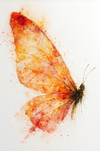 Orange Butterfly Watercolor Abstract Insect Rustic Dramatic Dark Duotone Living Room Bedroom Office