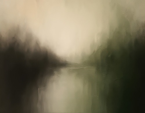 Extra Large Framed Tranquil Misty Lake Soft Neutral Abstract Landscape Illustration Home Living Room Bedroom Decor (Frame Assembly Required)