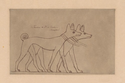 MUDECOR Framed Ancient Egyptian DoubleHeaded Dog Tomb of Ti at Saqqara Memphis Line Illustrations Fine Decorative Zen CountryFarmhouse Retro Bedroom Natural