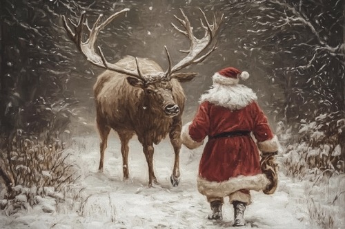 Framed Deer in Winter est RelaxCalm Warm Living Room Bedroom Office BLACK
