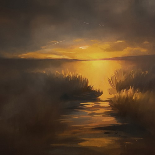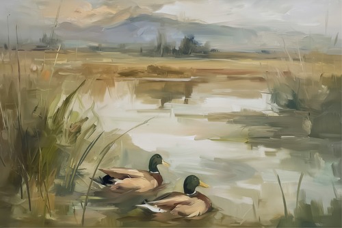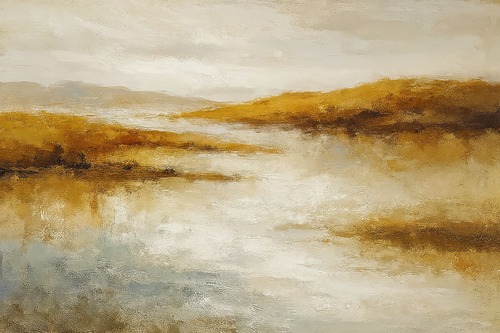 MUDECOR Large Tranquil Marshland Soft Pastel Landscape with Golden Reeds Illustrations Decorative Living Room Bedroom Office Large