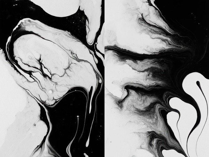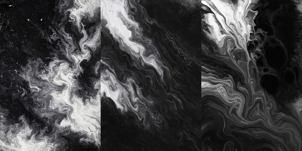 Framed Set Black and White Marble Abstract Fluid Digital Contemporary Living Room Bedroom Office Natural