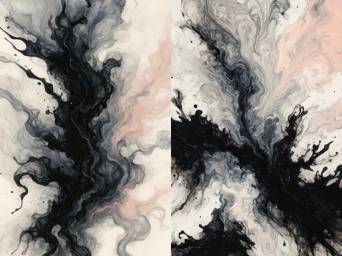 SIGNLEADER Set Black Ink Smoke Abstract Fluid Marble Illustrations Multicolor Living Room Bedroom Office