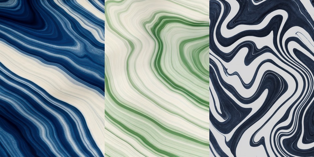 Framed Set Blue and Green Marble Swirl Abstract Bold Digital Contemporary Living Room Bedroom Office BLACK