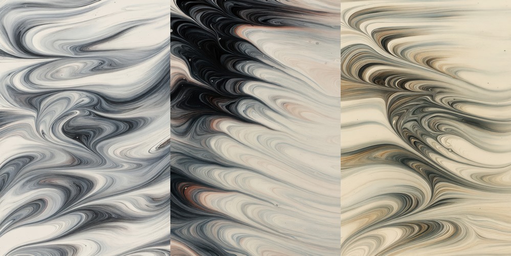 Framed Set Neutral Marble Swirl Abstract Elegant Fluid Pattern Digital Contemporary Living Room Bedroom Office BLACK