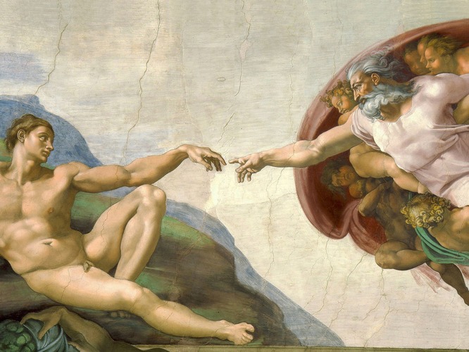 The Creation of Adam by Michelangelo Spiritual Religious Master ist Illustrations Decorative Vintage Retro Antique Bible Scripture Bedroom
