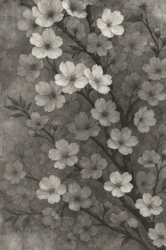 Monochrome Cherry Blossom Floral Rustic Dramatic Dark Duotone Living Room Bedroom Office