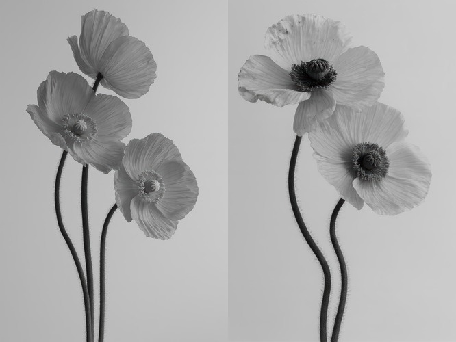 MUDECOR Framed Set Monochrome Poppy Flower Elegant Black and White Botanical Illustrations Decorative CalmZen Living Room Bedroom Office Black