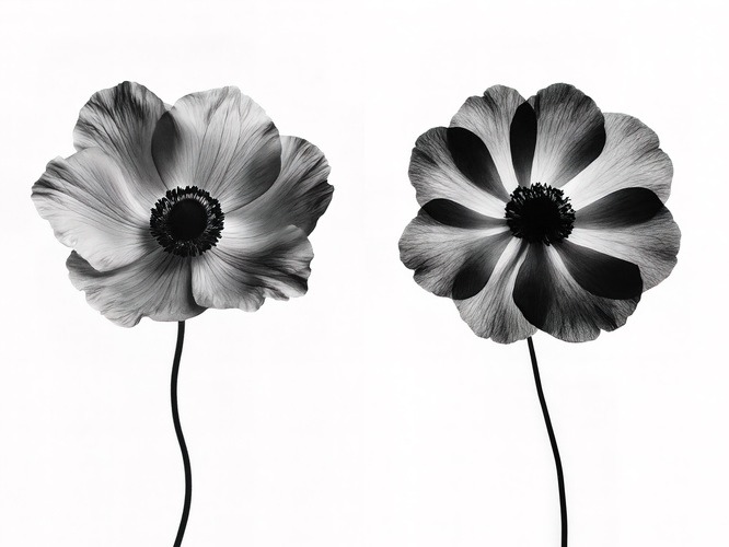 Framed Monochrome White Flower Minimalist Floral Illustrations RelaxCalm Warm Living Room Bedroom Office Black