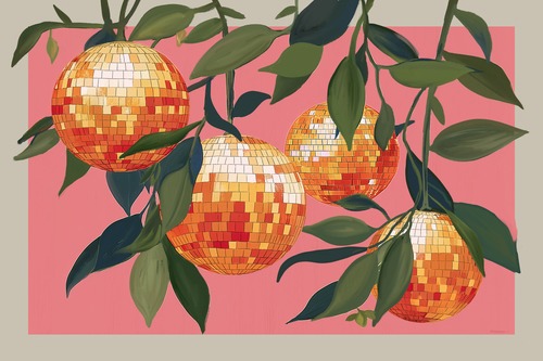 Framed Whimsical Orange Mosaic Fruit Playful Botanical RelaxCalm Multicolor Living Room Bedroom Office NATURAL