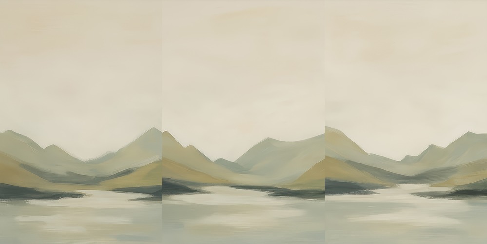 Framed Set Calm Mountain Lake Landscape Minimalist Neutral Illustrations Colorful Ultra Living Room Bedroom Office Black