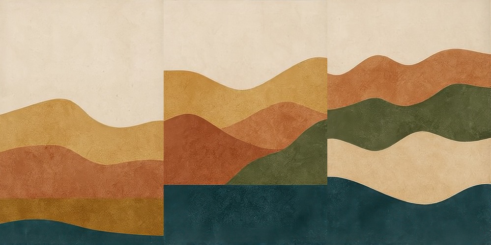 Set Abstract Mountain Landscape Earth Tone Illustrations Fine Decorative Botanical Rustic Living Room Bedroom Office