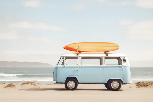 Poster Bathroom Decor Room Decor Multicolor Living Room Bedroom Office Calinia Surfboard Beach Wave s Van Wilderness Nature Realism Decorative Calm