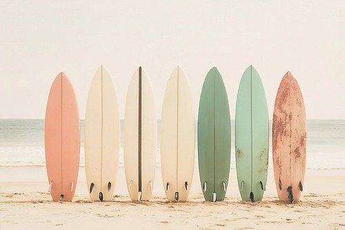 Surfboards on Beach Coastal Nautical Photography Realism Rustic Landscape Colorful Multicolor Living Room Bedroom Office