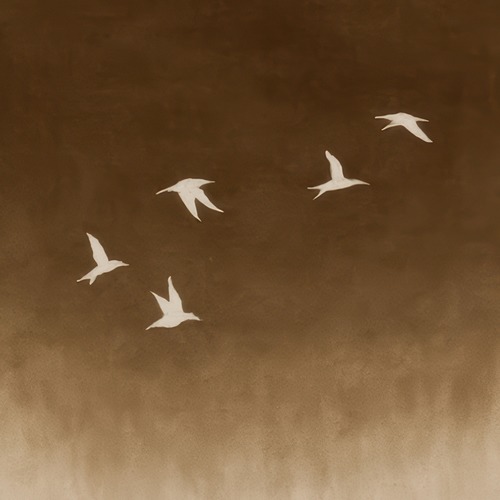 Adhesive Poster Soaring Cranes on Abstract Waves in Earthy Tones Illustrations Realism Rustic Nature RelaxCalm Multicolor Living Room Bedroom Office