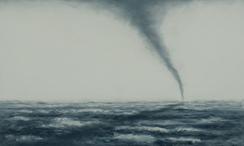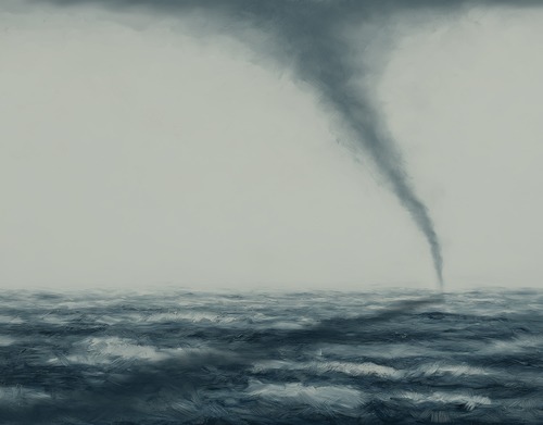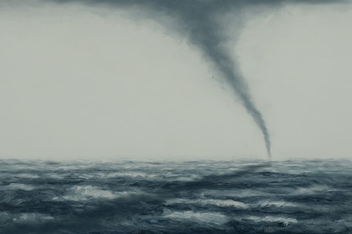 Extra Large Framed Tornado Over The Ocean Atmospheric Seascape Illustration Home Living Room Bedroom Decor (Frame Assembly Required)