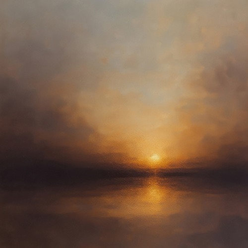 Golden Sunset Glow Over Water Atmospheric Landscape Fine Traditional Dramatic Multicolor Ultra Living Room Bedroom Office