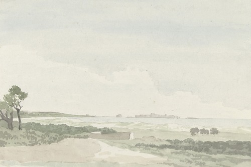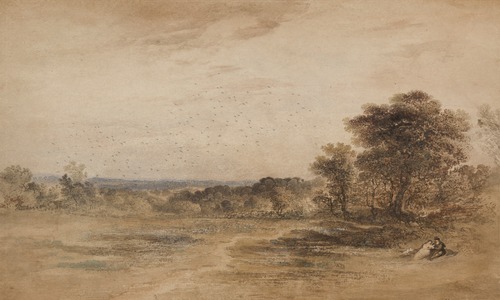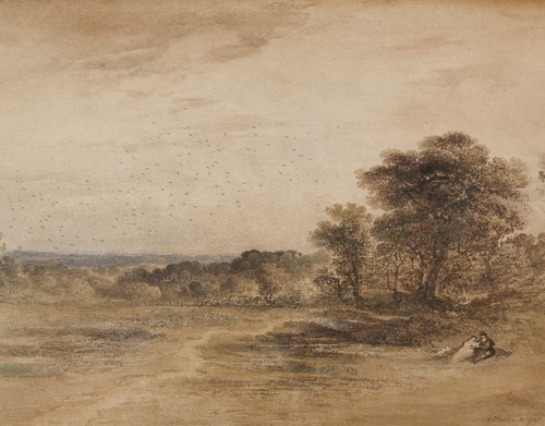 MUDECOR Framed Pastoral Scene with Figure and Flock Serene Meadow and Sky Illustrations Minimal Relax Living Room Bedroom Office NATURAL