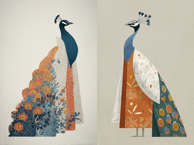 MUDECOR Framed Set Peacock Colorful Bird Illustrations Decorative Bohemian CalmZen Living Room Bedroom Office NATURAL