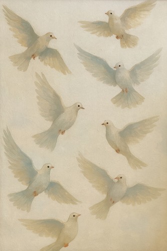 Framed White Doves Flying Peaceful Nature Illustrations Decorative Zen Rustic Calm Living Room Bedroom Office NATURAL