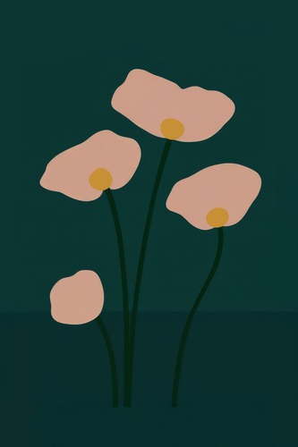 Premium Framed Minimalist Pink Flower on Dark Blue Background Illustrations Fine FarmhouseCountry Decorative Rustic Vintage Antique Classic Bedroom Natural