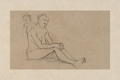 MUDECOR Framed Seated Nude Figure Sketch Minimalist Vintage Charcoal Illustrations Fine Decorative Zen Multicolor CountryFarmhouse Retro Bedroom Natural