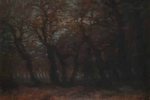MUDECOR Framed Dark Woodland at Dusk Moody Landscape with Silhouetted Trees Illustrations Minimal RelaxCalm Living Room Bedroom Office WHITE