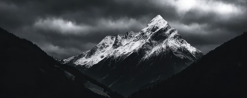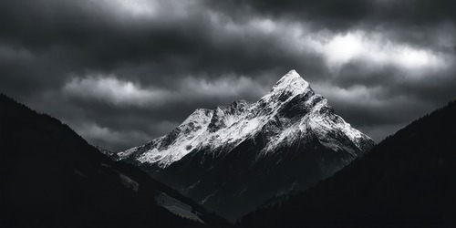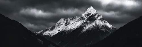 XL Framed Dramatic Snowy Mountain Black and White (Frame Assembly Required)