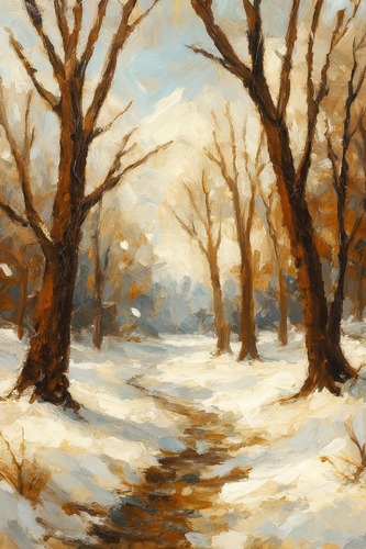 Snowy Woodland with Bare Trees Winter Landscape Photography Rustic Scenic RelaxCalm Living Room Bedroom Office