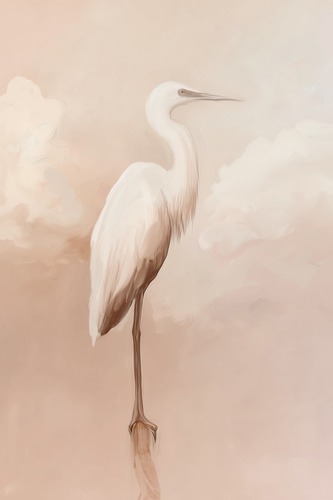 Elegant White Ibis Standing in Serene Wetlands Illustrations Decorative Multicolor Zen Rustic RelaxCalm Living Room Bedroom Offic