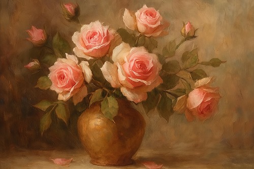 Framed Vintage Pink Roses in Vase Classic Floral Still Life Painting Illustrations Multicolor Living Room Bedroom Office Natural