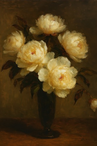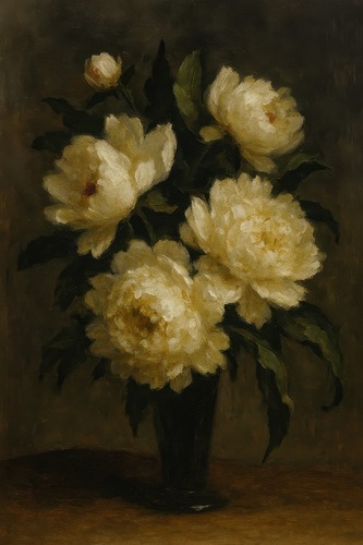 Premium Frame White Peony Bouquet Elegant Floral Still Life Illustrations Fine Traditional Iconic Living Room Bedroom Office Natural