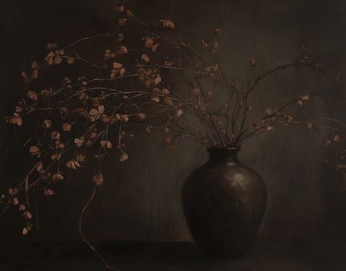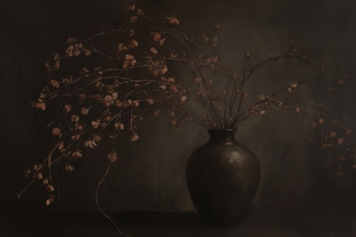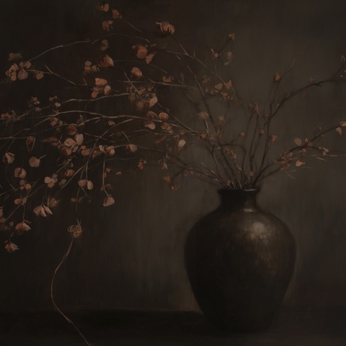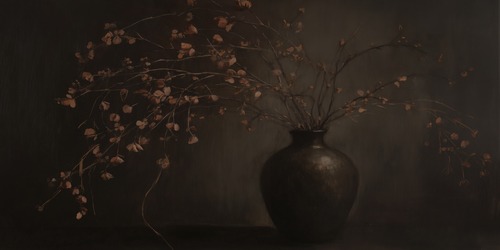 Extra Large Framed Dark Botanical Still Life Moody Vase with Dried Branches Illustration Home Living Room Bedroom Decor (Frame Assembly Required)