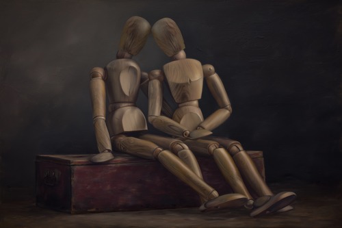 MUDECOR Framed Wooden Mannequin Figures Sitting Together Vintage Still Life Illustrations Living Room Bedroom Office BLACK